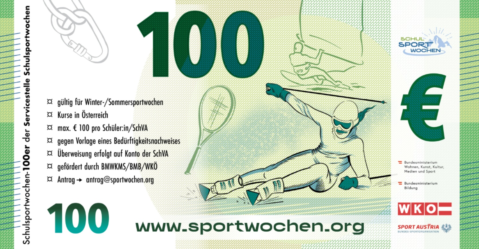Wir möchten euch auf die Initiative des Sportministeriums, Bildungsministeriums, der Wirtschaftskammer Österreich und Sport Austria hinweisen: Der "Schulsportwochen 100-er": x) gültig für Winter-/Sommersportwochen x) Kurse in Österreich x) max. € 100 pro Schüler:in/SchVA x) gegen Vorlage eines Bedürftigkeitsnachweises x) Überweisung erfolgt auf Konto der SchVA x) gefördert durch BMKÖS/BMBWF/WKÖ x) Antrag -> antrag@sportwochen.org Nähere Informationen hier: https://www.sportwochen.org/spowo-100er